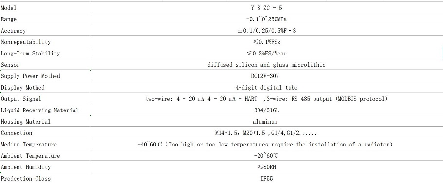 9. Működési környezeti feltételek: Szeizmikus ellenállási szint: Általános V·H·2 vagy V·H·3 típusú szeizmikus ellenállás, V·H·4 típus. Védettségi szint: Általános IP54 típus: Ez egy zárt típusú és ütésálló típus. 1P65 Hőmérséklet: Általános típus (-40~70)°C; Ütésálló típus (-5~55)°C (glicerin); (-25~55) ℃ (szilikonolaj). Relatív páratartalom: <85%.
