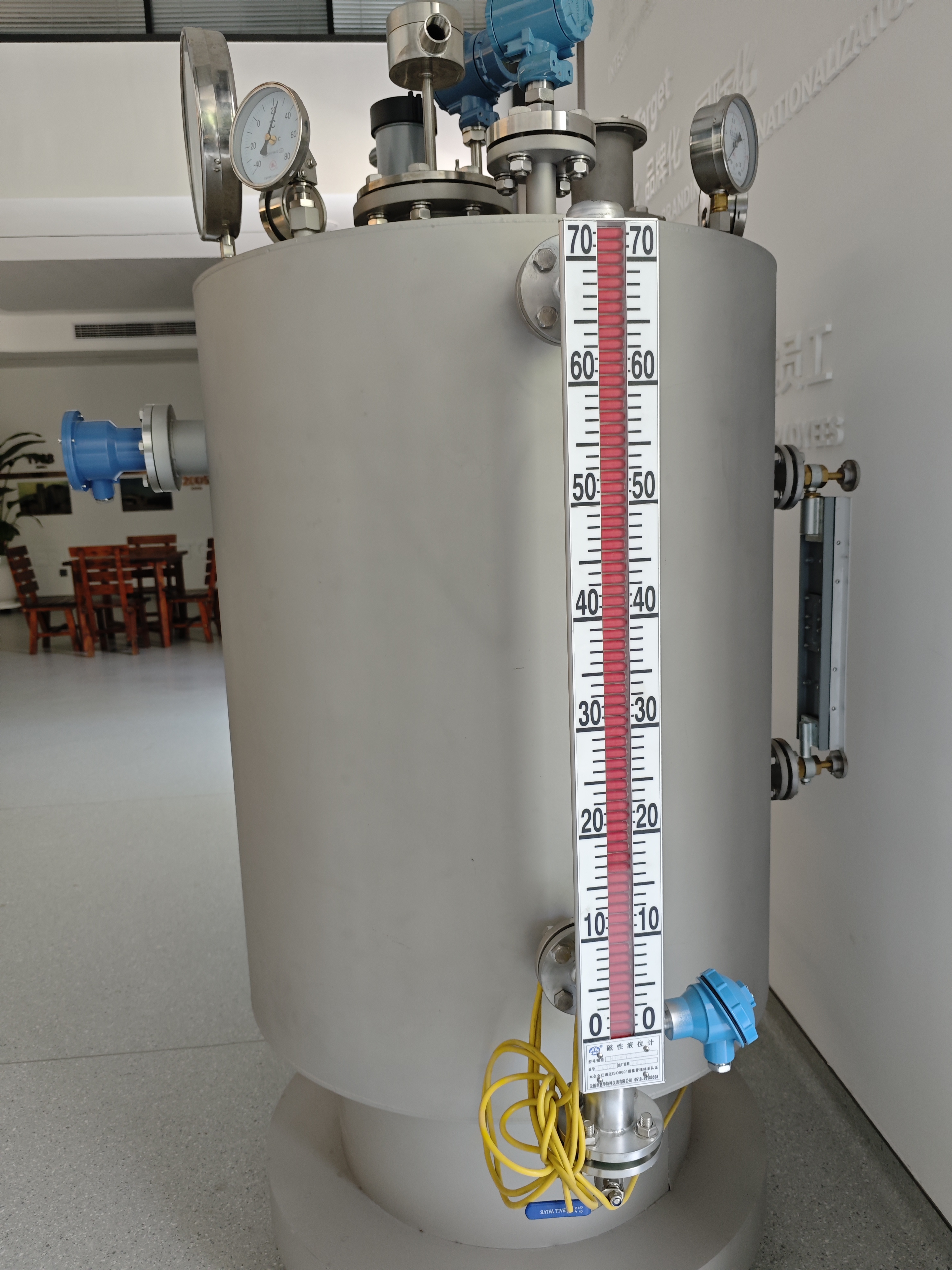 A kőolaj-finomítás és a vegyszergyártás folyamatai során kiemelt jelentőséggel bír a folyadékszintek monitorozása a különböző tárolótartályokban és reakcióedényekben. A mágneses csappantyús szintmérők valós időben képesek megjeleníteni a kőolaj, a finomított olajtermékek és a vegyi alapanyagok folyadékszint-magasságát. Mágneses kapcsolókkal kombinálva magas és alacsony folyadékszint riasztási funkciókat érhetnek el, hatékonyan megelőzve az olyan eseményeket, mint a tartály túlcsordulása vagy kiürülése. Például egy nagy olajfinomító tárolótartályának területén, mágneses csappantyús szintmérőkkel automatizált vezérlőrendszerrel együtt, távfelügyelet és automatikus folyadékpótlás érhető el, ami jelentősen növeli a termelés és irányítás biztonságát.