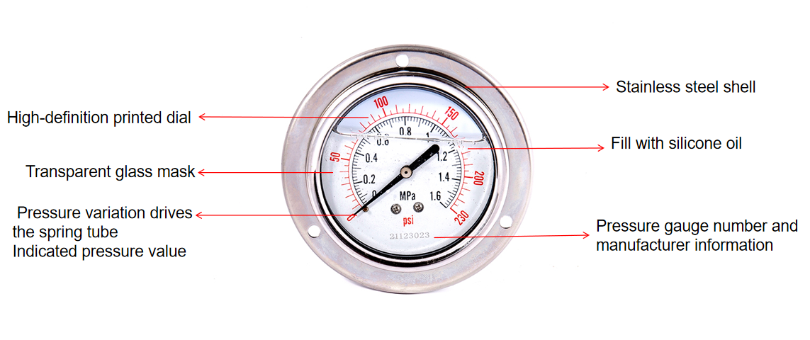 · Meg lehet határozni a nyomásvizsgálaton keresztül. Lassan növelje a nyomásmérő nyomását, és figyelje meg, ha a mutató visszatér a nulla helyzetbe. Ha a mutató rendellenesen viselkedik a nyomásnövekedés során, vagy ha a mutató nem tér vissza nullához a nyomás felszabadulása után, ez azt jelzi, hogy a rugócső sérült, és egy új nyomást hordozó alkatrészt kell cserélni. Ennek távol kell lennie a magas hőmérsékletű forrásoktól és a korrozív közegektől. Ha a telepítési környezet gyenge, akkor a telepítés feltételeit javítani kell.