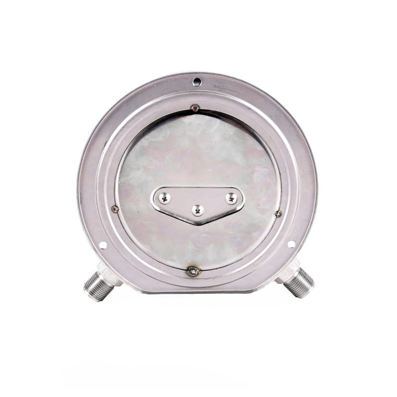 Különböző nyomás alkalmazása esetén (általában a nagynyomású vég magasabb, mint az alacsony nyomású vég) , a mozgatható tartóra ható két Bourdon-cső ereje nem egyenlő, tehát a megfelelő elmozdulást előállítják, és a sebességváltó átviteli mechanizmust meghajtják és amplifikálják, és a kettő közötti differenciális nyomásértéket jelzik, miután a mutató elhajolt.