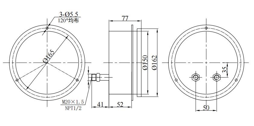 3. Közös szál mérete: Hagyományos M20 × 1.5 , NPT1/2 (vagy az ügyfél kijelölése);