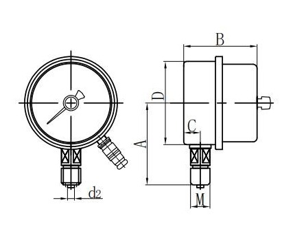◆ Alkalmazás: Az ilyen típusú műszer alkalmas a folyadékok, gázok vagy gőzök nyomásának mérésére robbanásveszély nélkül, kristályosodás nélkül, megszilárdulás nélkül, és nincs korrozív hatás a réz- és rézötvözetekre. Ha megfelelő áramkörrel van felszerelve, riasztást vagy automatikus vezérlést küldhet a mérni és vezérelhető nyomásrendszernek.